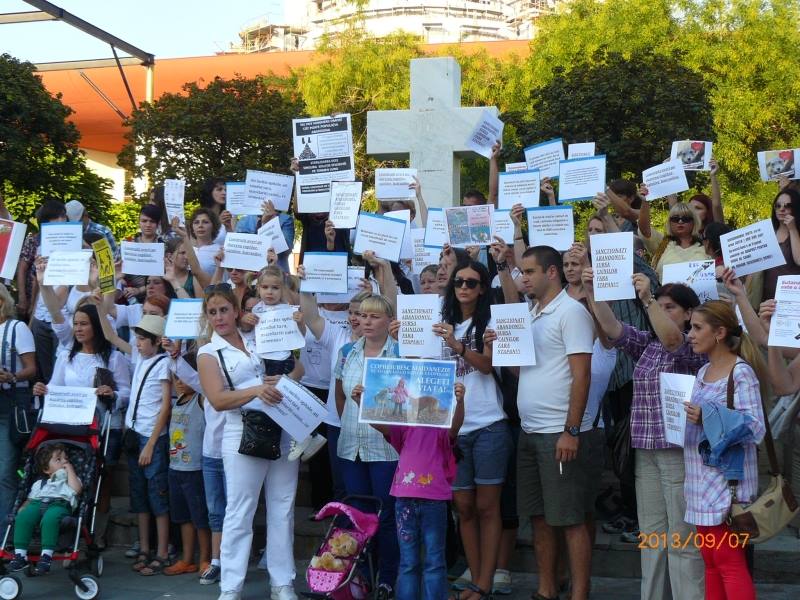 Protest al bucurestenilor impotriva eutanasiei in masa a cainilor comunitari si in general impotriva proastei gestionari a situatiei cainilor comunitari de catre autoritati. Piata Universitatii, sambata 7 sept 2013. Cu totii dorim sa nu mai vedem caini fara stapan pe strazi, insa dorim sa se ia masuri civilizate si eficiente, asa cum le-au fost propuse autoritatilor inca de multi, multi ani, fara ca ele sa asculte. Doar asa ne vom putea numi locuitori ai unei capitale europene, cu pretentii de civilizatie, in secolul XXI.