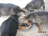 Ceilalti patru au ramas in custodia noastra. Iata-i pe micutii care au crescut deja si curand vor trebui sa fie vaccinati. Au fost deja deparazitati intern de doua ori, sunt sanatosi si au o pofta de mancare iesita din comun.