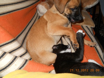 Pe mama mea naturala nu prea am avut timp sa o cunosc ca cineva m-a aruncat alaturi de fratii mei in camp. Apoi am cunoscut o noua mama care m-a adoptat si m-a crescut asa mare si frumos. Ea m-a invatat sa fiu simpatico, jucaus si sa ma inteleg bine cu alte animalute.