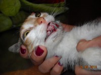 Va scriu pentru ca nu stiu incotro sa apuc, si am o situatie foarte trista. Am gasit o pisicuta mica, nu pare sa aiba mai mult de o luna, desfigurata – are barbia sfasiata de o rana adanca, arata ca o „a doua gura”.