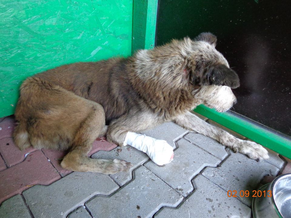 Mosulica este internat acum si a primit un prim ajutor. Situatia lui este insa incerta tinand cont de varsta inaintata a catelului. Exista un risc major sa moara in timpul operatiei de amputare a labutei si cu toate astea trebuie sa incercam sa-l salvam.
