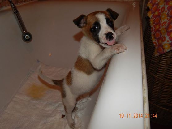 Cady este ultima din cei 13 catei culesi de noi de pe drumuri in ultimele doua zile. Pentru ca nu mai avem unde sa-i gazduim am cerut ajutor si am capatat pt Cady o noapte in cada unui vecin. Maine va ajunge la adapost unde se va alatura celorlalti pui culesi de pe camp.