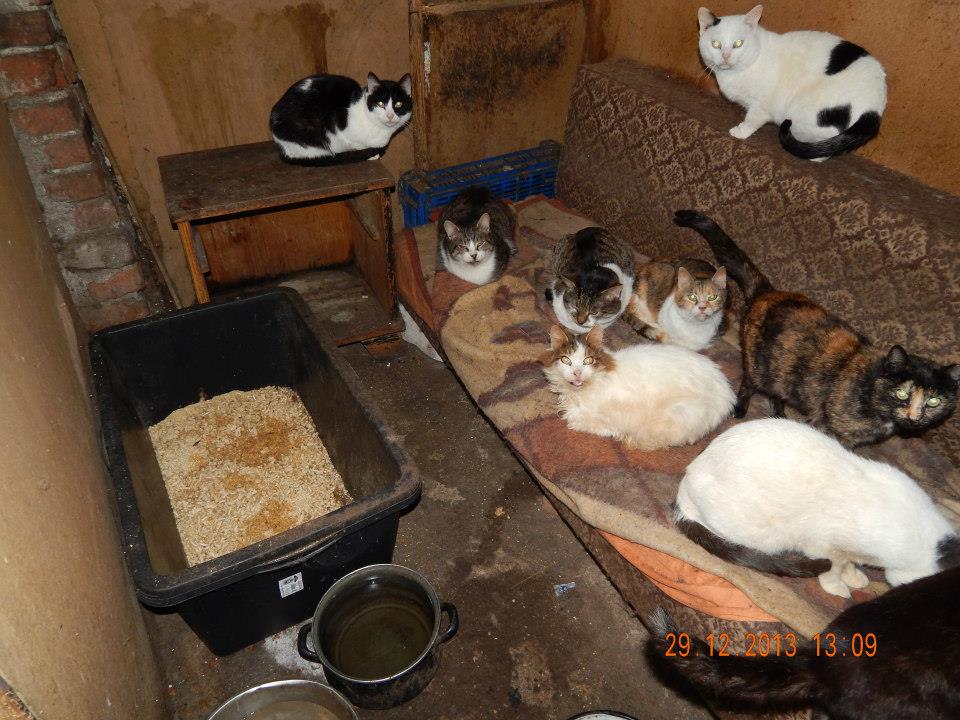 They are beautiful, most of them are docile and old and are in urgent need of help. All of the cats have been taken from the streets by a person that cannot keep them inside the house so with the help of another elderly person are kept in a small, dark, cold and highly unhygienic storehouse. Their protector recently underwent a surgery for cancer and visits them daily for food but that is all that she can do.