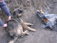 Astazi, pe drumurile noastre, pe marginea Soselei de Centura. Intai am crezut ca e un caine mare, mort, lovit de masina, ca atatia multi altii. Ne-am apropiat sa verificam, cum facem intotdeauna, si am vazut ca traia. Dar statea nemiscat, cu capul langa lesul in putrefactie al unui alt caine, pe jumatate bagat intr-un sac.