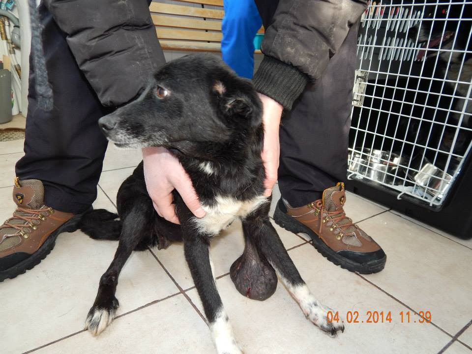 treshVremea rea a prins o catelusa cu patru pui pe un camp. O persoana cu mult suflet s-a dus zi de zi sa ii hraneasca si le-a facut si un mic adapost. Din pacate trei dintre pui au murit si pentru ca s-a temut pentru viata puiului si a catelusei mame ocrotitoarea lor ne-a solicitat ajutorul. Mama si puiul au fost preluati de Asociatia pentru protectia animalelor Robi si au fost internati la Cabinet dr Bercaru. Puiul a fost externat azi si dus in adapost si batranica lui mamica a ramas inca internata pentru ca trebuie operata. Dupa cum vedeti are o formatiune de tip tumoral ce trebuie extirpata. Azi e ziua cea mare pentru ea deoarece este o catelusa batrana si riscurile anesteziei sunt pe masura varstei ei. Va rugam sa-i tineti pumnii micutei pentru are nevoie de mult noroc.treshBad weather caught this mom of four pups on an open field. A big hearted person visited them everyday, fed them and made them a small shelter. Unfortunately, three of the puppies died and because she feared for the life of the fourth one, their protector asked for our help. The mom and pup were taken in our care and hospitalized at dr Bercaru’s clinic. The puppy was released today and taken to the shelter but his old mom stayed for she needs a surgery. As you can see, she has a tumor that needs to be removed. Today is a big day because the anesthesic is a high risk for this old lady. Please keep her in your prayers for she needs all of your kind thoughts.