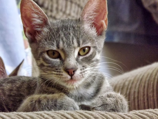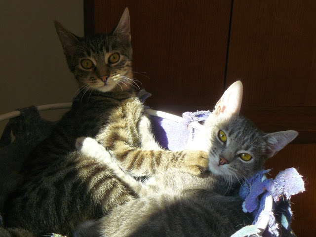 Fetita, gri tigrat mai deschis, se numeste Cleo, iar baietelul, tigrat mai inchis, este Lenny.