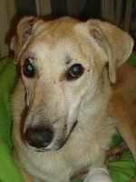 Pentru ca se descurca greu in adapost, a fost luat in cazare temporara unde a dovedit ca e un urias bland care adora sa se joace, care invata usor sa mearga in lesa si e un caine de baza.