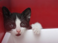 Eva (alb cu negru) este o pisicuta independenta, care nu tine sa fie mereu langa fratii ei, dar adora sa aiba oameni in preajma.