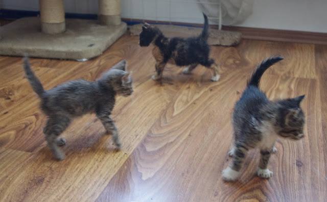 Micutii momentan stau la separeu pentru ca in casa in care stau mai sunt si alte pisicute, chiar si asa se joaca impreuna in spatiu mic pe care il au si dorm unii in altii. Cand se trezesc, te urmaresc cu privirea sa vii si pe la ei sa ii iubesti si sa te joci cu ei.
