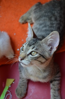 Este un motanel vorbaret, jucaus si dornic de afectiune. Daca ar fi tinut numai in brate ar fi cel mai fericit.