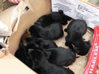 Catelusii au fost deparazitati intern si extern si daca puteti sa ii adoptati sau sa le oferiti cazare temporara, va rugam sa ne trimiteti un e-mail la asociatia.robi@gmail.com.Saturday, when we arived to the shelter we found a box with seven puppies in it, recently abonded. Unfortunately, this is not an isolated case and people refuse to understand thar our powers are limited and it we’ll be incresingly harder for us to continue our activity. Because not many people are aware where is the shelter, we don’t understand why our ‚friends’ didn’t ask for our help to neuter the female dog, instead of giving us this puppies as a ”gift”.