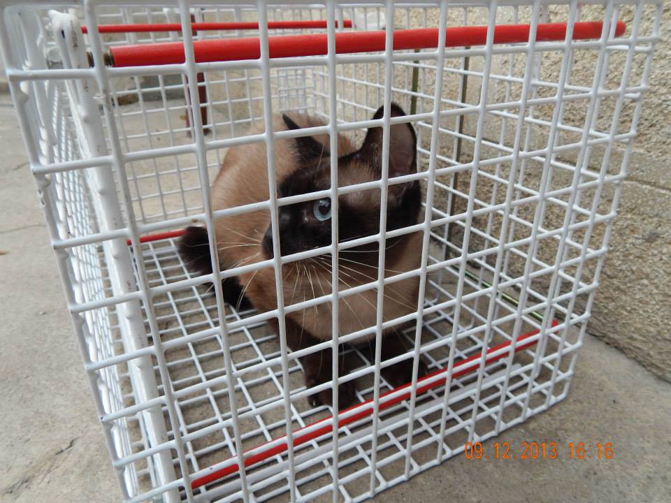 Ca sa-l putem muta am fost nevoiti sa folosim cusca de contentie. Acum se afla in compania a 19 alte pisicute dintre care majoritatea sunt semisalbatice.