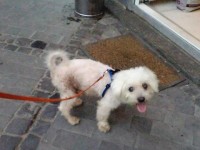 „Catelul nu cred ca s-ar simti bine in adapost, mai ales acum cind e baiat de Magheru. Azi l-am tuns si l-am pozat. Arata a bichon normal.”