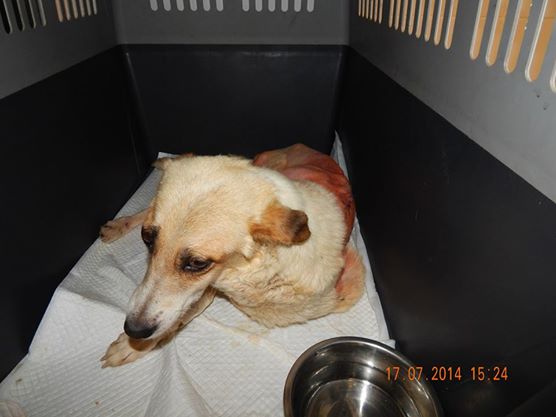Greaty and her puppies were taken in our care and she has been hospitalized at the Dr. Brercaru Vet Clinic where her spine has been recently operated. Unfortunately, she will remain paralyzed for the rest of her life. Greaty has been hospitalized for some time and she can not stay forever there. Greaty needs to be adopted urgently otherwise she risks being put to sleep. We already have two dogs in her situation and we are not able to take care for one more; //Noi avem deja doi caini in situatia ei si nu mai putem ingriji inca unul asa ca va rugam ajutati-ne sa-i gasim catelusei paralizate o familie capabila s-o ingrijeasca asa cum e.