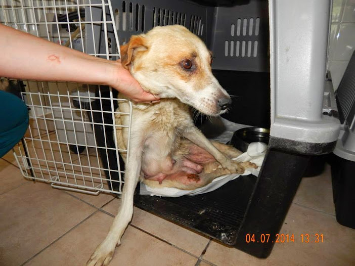 Greaty, asa am numit-o pe inimoasa catelusa mama, are probleme majore. Coloana ei este rupta si asta inseamna ca va ramane in aceasta stare tot restul vietii ei. Are doua fracturi la coloana, una mai veche si calusata deja si una recenta care i-a fost fatala. In plus mai are si un glont langa coloana. In caz ca nu stiti, in Romania cainii se impusca legal si de multe ori vanatorii incalca legea facand asta doar pentru distractia lor.