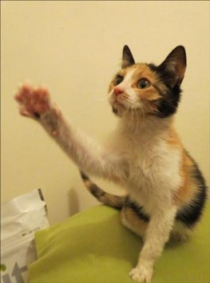 Sunt micuta, pictata si cu scufita… neagra. Asa am auzit eu ca e la moda. Lupul ce rau (mi s-a spus ca ar fi fost doar un caine mare, dar eu nu prea cred) m-a alergat prin toata gradina unde am fost aruncata, pana m-am ascuns intr-o crapatura la baza unui bloc. Lupul latra si latra, si pe mine ma dureau urechiusele si incercam sa ma ascund cat mai adanc. Chiar cand credeam ca nu o sa mai ies niciodata de acolo a venit Voluntarul, care a gonit lupul si m-a luat in brate. Cat de fericita am fost! Am tors, am facut cozonacei, m-am uitat cu ochisori maaari in ochii voluntarului, numai sa nu ma mai lase niciodata sa ma intalnesc cu lupul cel rau.