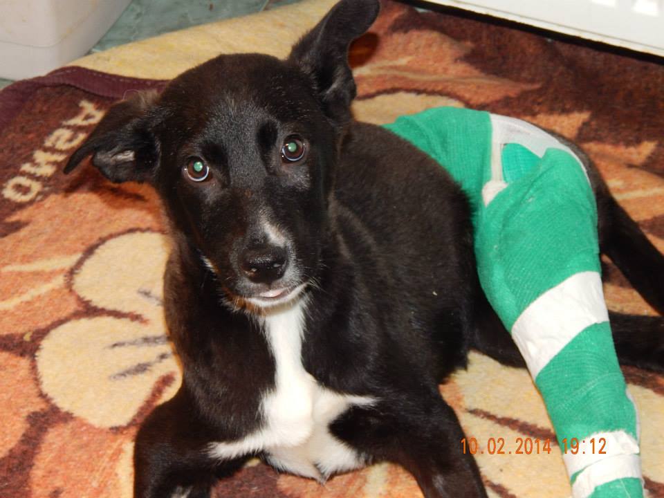 And she couldn’t leave her there. She took her home and then to City vet clinic on the second day, where she was diagnosed and had a surgery. The puppy had a femur and tibia fracture on the leg. Lidia needs financial support and fostercare.