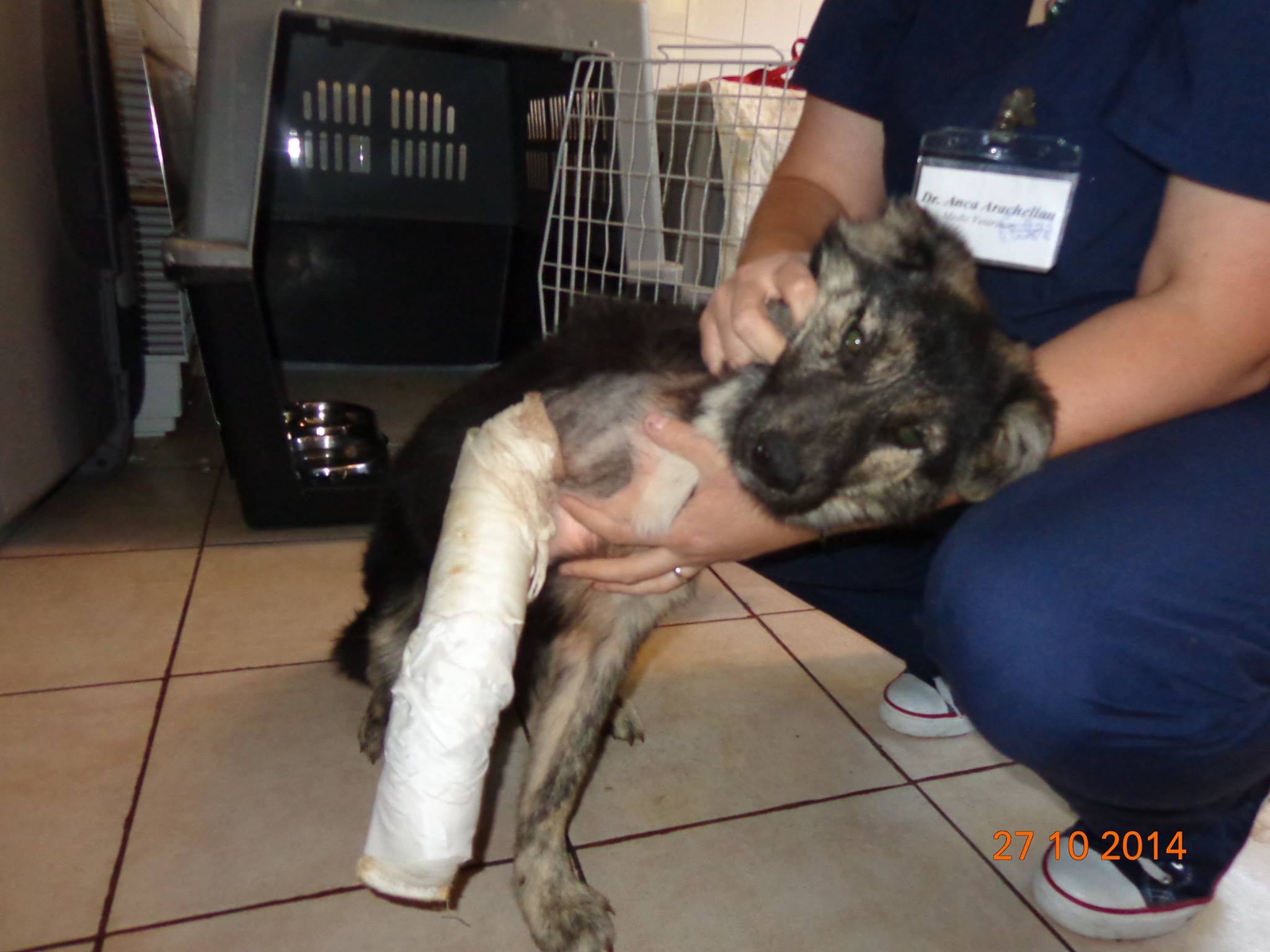 urma radiografiei a reiesit ca labuta este fracturata, asa ca a fost operata. Acum se reface si isi asteapta stapanul.