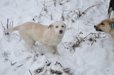 Looking as if she came right from the North Pole, little Milky Way is the little lady of the group. She proved to us she is caring and loving, but the lack of an owner saddens her deeply, as you can see in her eyes. Will you be the one that will give her the joy in her eyes? Contact us at asociatia.robi@gmail.com or at raluca.sim@gmail.com if you want to adopt Milky Way!
