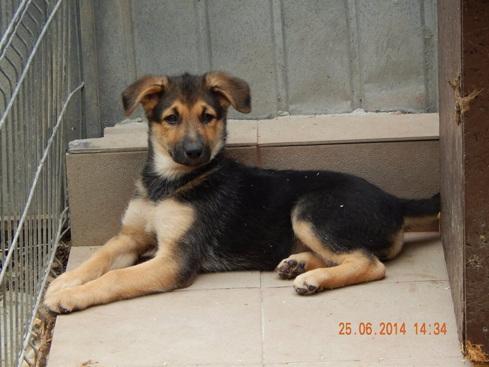 Mollly a foat abandonata pe un camp din preajma adapostului nostru acum patru luni impreuna cu o surioara de-a ei pe care am numit-o Tessa. Amandoua au fost preluate de Asociatia Robi si spre norocul lor au fost crescute cu grija si dragoste de voluntara noastra Catalina A., pana cand au putut fi aduse in adapost.