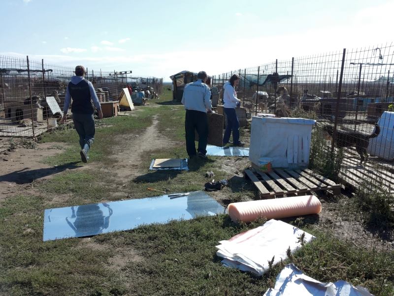 Va multumim inca o data pentru ajutorul dat animalutelor de care ne ocupam.It was a beautiful day, the weather was good and we managed to do a lot, we put the tin on some of the shelters and we covered the holes from the others, we put new hay, we fed the dogs, we cleaned the place, we spoiled them…a very busy day! Thank you once more and we would like for you to keep supporting us and our proteges, because we still have a lot to do before the winter comes.