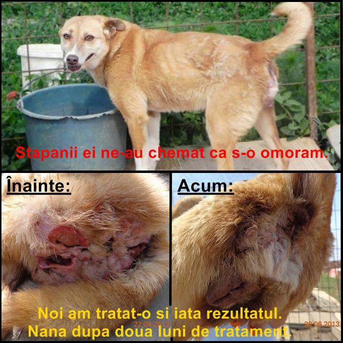 Dupa doua luni de la inceperea tratamentului, Nana arata si se simte foarte bine. Ii mai trebuie doar o familie responsabila. Nu putem uita cu cata nonsalanta au vrut fostii ei stapani sa-i faca eutanasie fara sa gandeasca macar ca micuta ar putea fi tratata. Daca vreti sa o adoptati va rugam sa ne contactati la : asociatia.robi@gmail.com.
