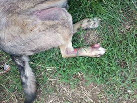 Acest catel a suferit acum cateva saptamani un accident si are nevoie urgenta de a fi vazut de un veterinar. Din pacate, nici unul dintre voluntarii Robi ce au masina nu il pot aduce in timp util in Bucuresti.