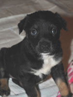 O bucatica de catel de doar 2 zile,Notte, s-a transformat intr-o minunatie moale si pufoasa, neagra cu manusi bej cu alb.