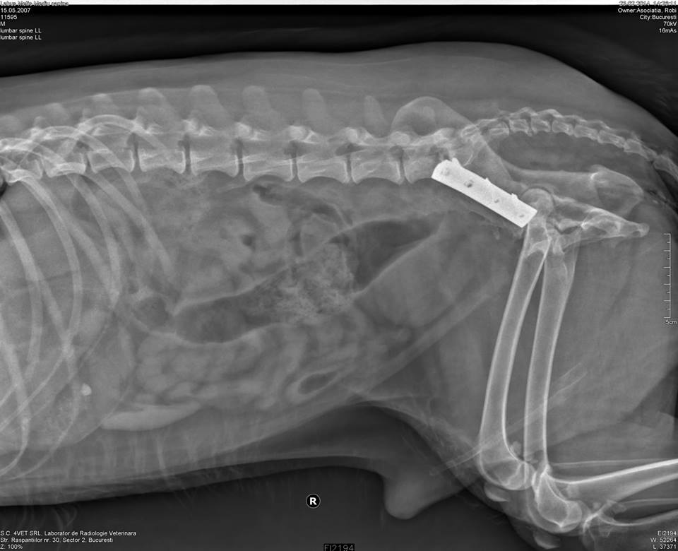 Din pacate, dupa ce va termina tratamentul cu antibiotic, va fi nevoie de o interventie pentru eliminarea placutei metalice. Unul din suruburi preseaza intestinul (o alta cauza a constipatiei) si mentine infectia ‘anuala’ a piciorului.