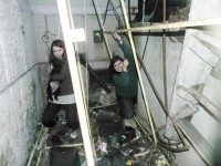 After several failed attempts when she get under a scaffold and came out where you didn’t expect, or you thought you had surrounded her and she ran underneath your feet, or she disappeared under the cars and after a few seconds appeared at 10 meters away, but her misfortune (luck actually) was that she slipped,  among the scaffolds, under a concrete ramp with a single entry about a meter per a half meter. After we raised the scaffolds which blocked the access, two of us managed to enter under the ramp (who recently was the residence of some homeless people). After we talked a bit with her, a bit of running on four paws (from her part, and from ours) and after we blocked the exit (to not start again) we did finally get our hands on her. Great joy for us, squeaks and panic for her, but it was worth it!