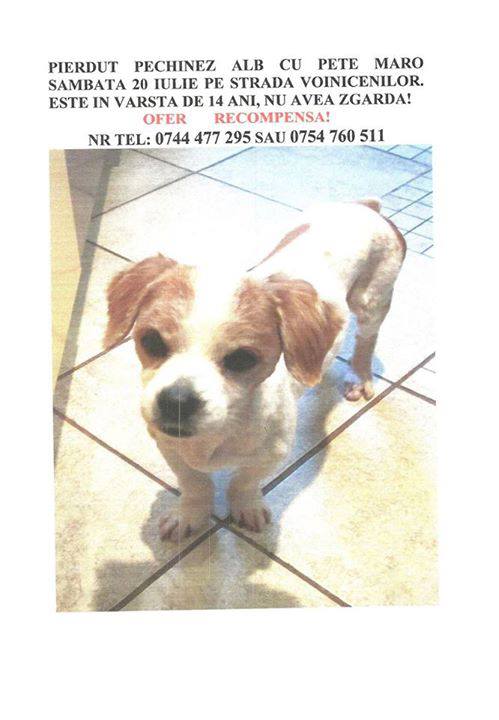 A disparut sambata 20 iulie intre orele 13-15, de pe strada Voinicenilor (aproape de Bardesti) Targu Mures. In jurul orei 14.00 a fost vazuta de catre niste muncitori care i-au dat sa manance. Nu avea zgarda. Este sensibila, moale. Are regim alimentar…. si o insuficienta cardiaca. Picioarele din spate ii sunt foarte moi..