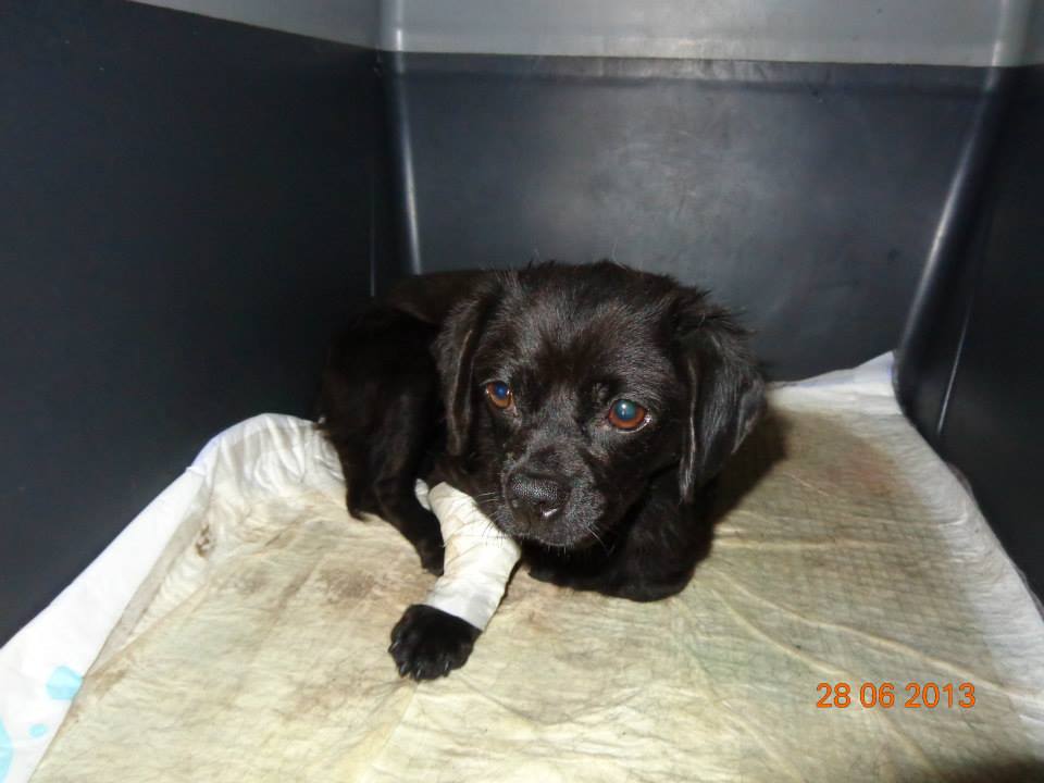Micuta catelusa a fost gasita hoinarind pe strada, de catre Maria voluntara noastra. A fost internata pentru a fi sterilizata si in timpul operatiei a avut un soc si a incetat sa respire. Le-a fost cumplit de greu medicilor s-o opereze si s-o ajute sa traiasca artificial pana au terminat operatia. Apoi pana au adus-o in simtiri a durat destul de mult. Spre norocul ei micuta si-a revenit si acum e in afara oricarui pericol.
