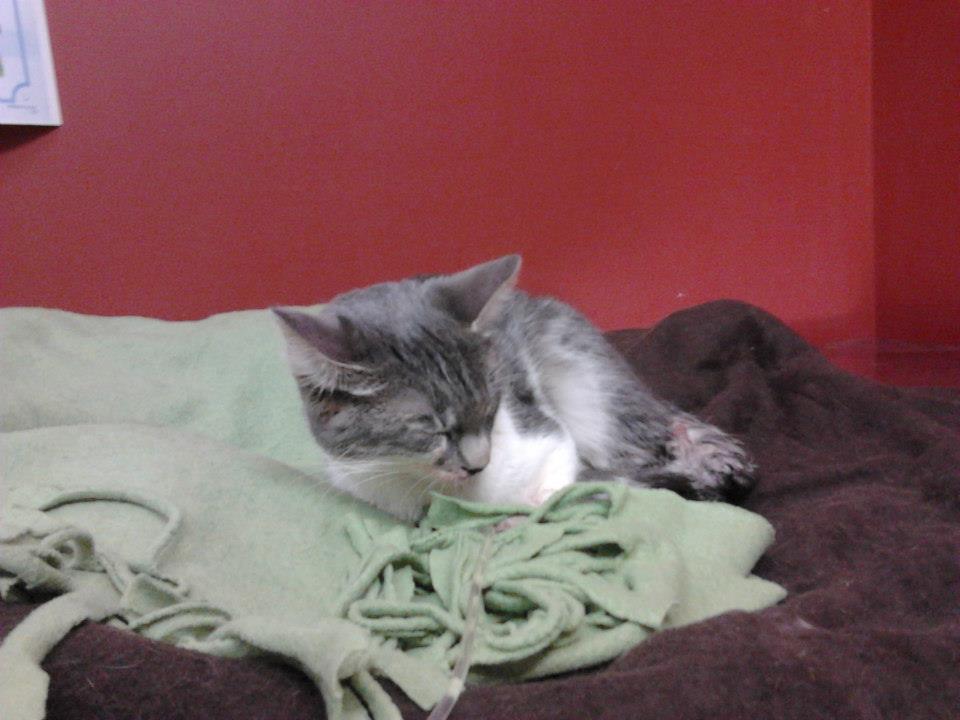 A tors a facut si ceva colacei pe paturica dar in acelasi timp are un tremur din cand in cand de la frigul indurat sau cine stie de la ce alte probleme. Sper din toata inima sa supravietuiasca si sa nu aiba intern probleme foarte serioase.