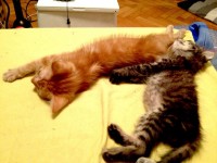 Cei doi mai maricei, Taj(roscovanul) si Simon (cel gri), au trecut peste problemele la ochi, dar nenorocirea face ca Simon sa se fi lovit foarte tare la cap, drept urmare a fost gasit inert pe podea. A fost dus de urgenta la clinica veterinara, iar acum se lupta sa isi revina.