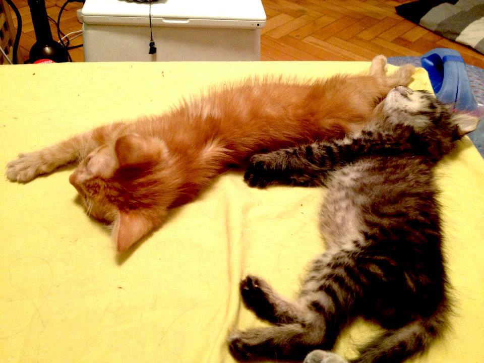 The two slightly bigger ones, Taj (the redhead) and Simon (the grey one), have got over the eye problems, but unfortunately Simon had hit his head against something very badly and he was found lying on the floor, inert. He was immediately taken to the vet and now he’s struggling to get well again.