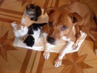 Tasha, our paralyzed dog, shares her blanket with the little kittens and don’t mind it at all. The kittens stay next to her like she is their mother. Tasha,Amor,Zaza and Fluffy are feeling good together and that is showing us that friendship doesn’t have barriers.