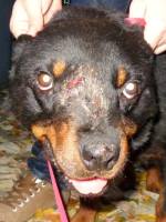 Rott a fost abandonat mai mult ca sigur din cauza starii lui de sanatate. Cainele are cancer si din pacate niciun tratament nu-l mai poate ajuta. Starea lui generala este inca buna.