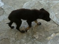 Una dintre voluntarele noastre era pe drum spre Bucuresti, de la Tulcea. Un mic popas la o terasa de langa sosea. Printre cainii adulti, nelipsiti teraselor de provincie, se zarea o mogaldeata neagra, amarata, slaba, chircita si cu coada intre picioare.