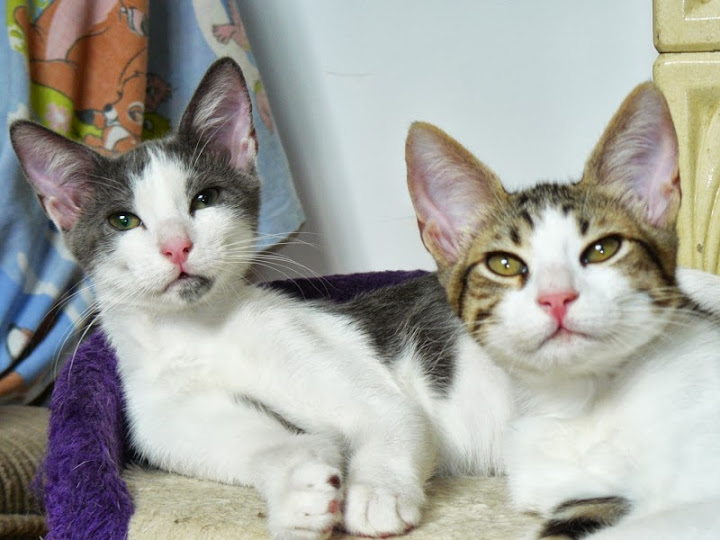 Tigrutzul si Griutzul sunt doi fratiori in varsta de trei luni si jumatate, energici, jucausi si mari amatori de mangaieri. Se inteleg bine cu alte pisici.