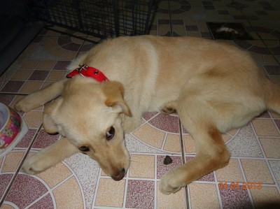 Tina a fost accidentata la numai cateva luni de un sofer neatent. Din fericire a fost gasita si preluata de noi. A fost operata la labuta care ii crea probleme, si acum a inceput deja sa se sprijine in ea.