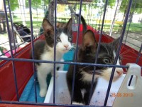 Pisoiul cu mai mult negru e motanel iar cel cu mai mult alb e femela. Cei doi frati au fost prezenti sambata trecuta in parcul din obor la ADOPet si v-au asteptat sa veniti sa-i vedeti ce minunati sunt.