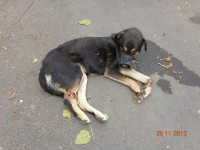 Va scriu din disperare cu un catel de talie medie spre mare care zace in spatele blocului cu labutele taiate.