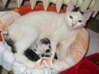 Pisica mama a avut parte de un trai bun timp e o luna. Acum o luna cineva a gasit-o pe strada si de mila a luat-o-n casa. Ieri pisica a nascut cinci pui si cei care au tinut-o pana acum nu o pot pastra. Ne-au solicitat ajutorul dar din pacate nici noi nu avem unde sa-i asiguram un locsor in care sa-si cresca puii in tihna.