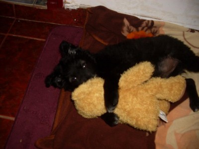 Sunt tare jucausa dar si foarte ascultatoare si desteapta, am invatat imediat smecheria cu paturicile absorbante si m-am imprietenit imediat cu ursuletul de plus!