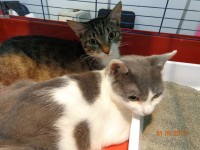 „Sissi si Johnny sunt fratiori, si au fost salvati de la o femeie in varsta si cu probleme psihice, in urma cu 2 luni. Au fost sterilizati, deparazitati intern si extern si vaccinati. Sunt obisnuiti sa foloseasca litiera si au fost hraniti cu mancare speciala pentru pisici.
