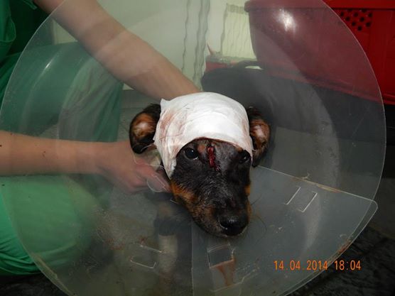Nu vom afla probabil ce s-a intamplat si cum a ajuns catelusa sa fie lovita in cap. Cert e ca problema ei s-a rezolvat in mult timp, cu multa suferinta din partea ei si cu ajutorul nesperat al domnisoarei care s-a hotarat s-o gazduiasca in cazare temporara.