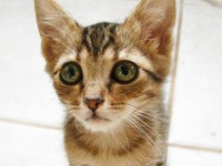 Veve is a very beautiful cat, she has a very special coat color, like caramel, that looks a lot like that of a Bengal. Her eyes are big and very well outlined.