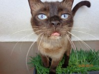 My dear friends, you must know that I like grass so much (to eat it and, more than that, to roll over in it) that I decided to claim the entire window box. It’s mine and I won’t let anyone else have it! You’ve been warned!