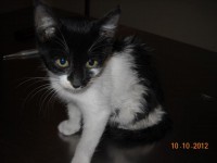Trei pisoi, doi alb cu portocaliu si unul negru cu alb, au fost abandonati pe o strada din Bucuresti. Desigur pe aceasta stada isi fac veacul si cativa caini, care vazandu-i pe intrusi i-au luat la alergat. Doua pisicute s-au urcat intr-un copac iar cea negru cu alb pe care am numit-o Zaza, s-a refugiat in curtea unui gospodar si culmea a nimerit direct in coltii altui caine.